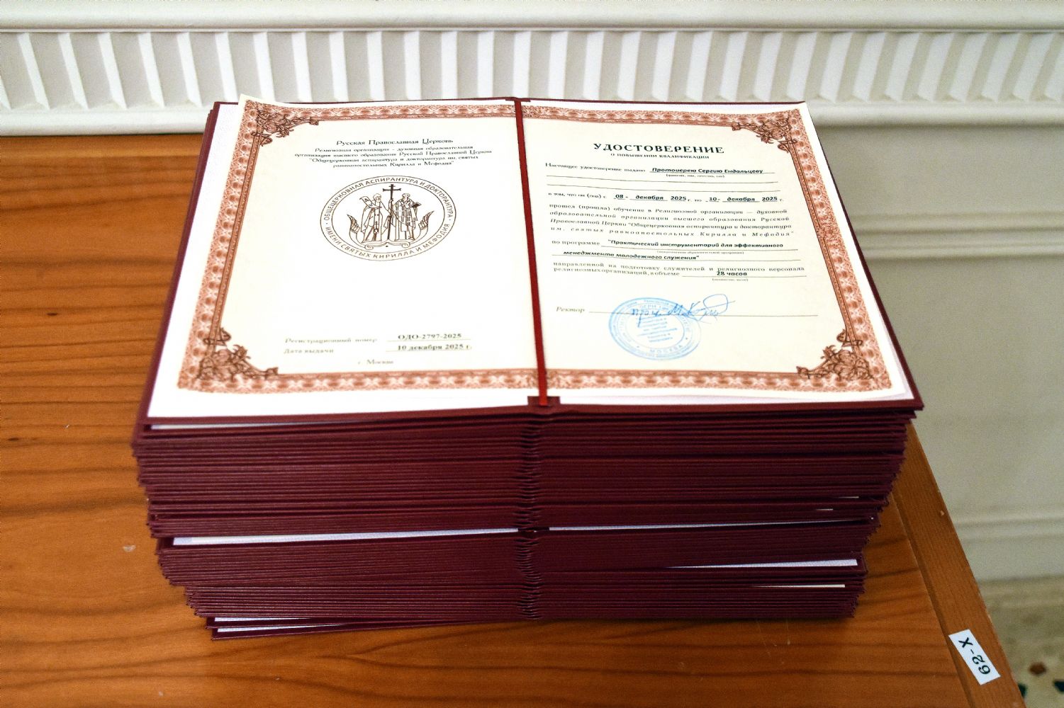 С 8 по 10 декабря 2025 года в актовом зале Общецерковной аспирантуры и докторантуры им. святых равноапостольных Кирилла и Мефодия состоялись курсы повышения квалификации для ответственных за молодёжную работу в епархиях Русской Православной Церкви.