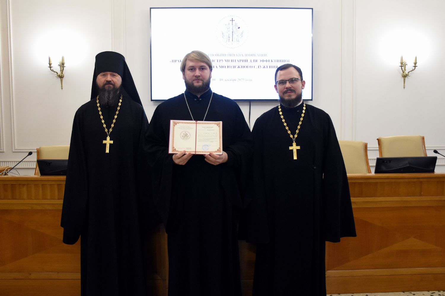 В последний день обучения с заключительным словом к слушателям обратились проректор по молодежной политике и воспитательной деятельности игумен Антоний (Кадышев) и заместитель председателя Синодального отдела по делам молодежи иерей Алексий Соловьев.
