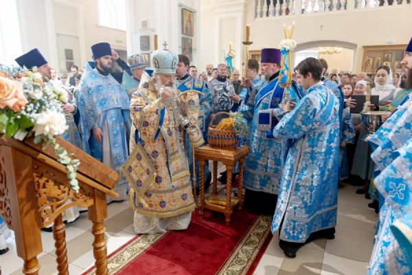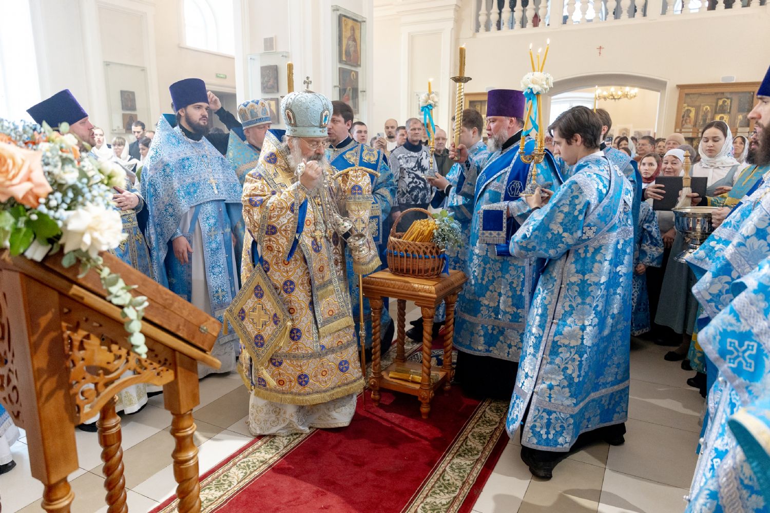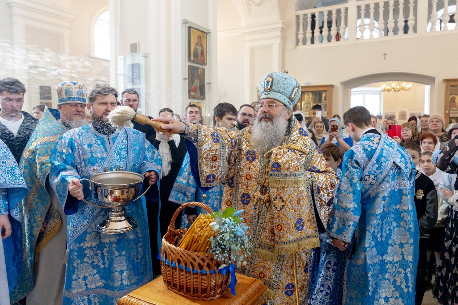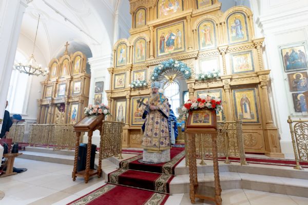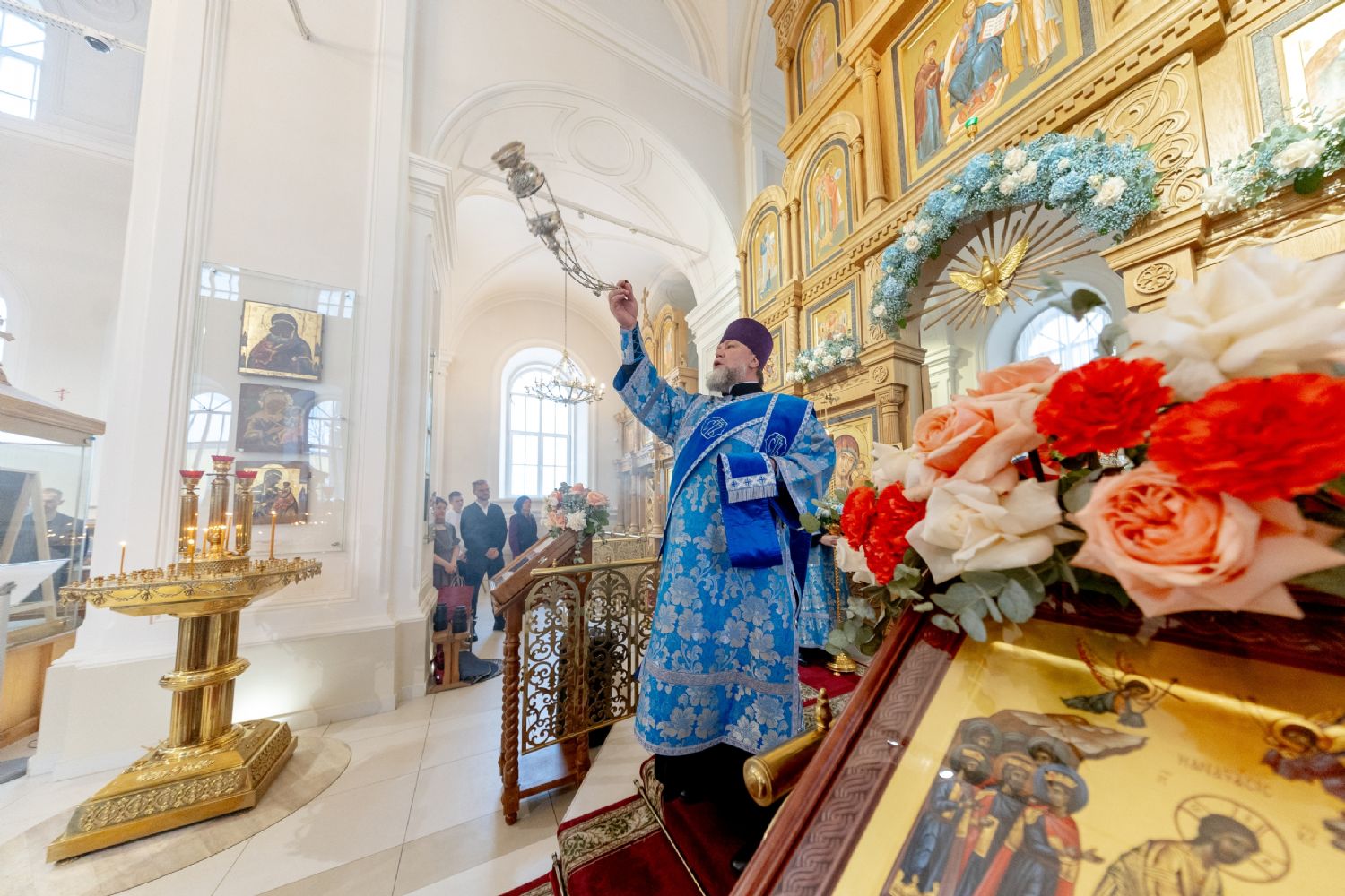 Его Высокопреосвященству сослужили благочинный I округа города Казани протоиерей Владимир Самойленко, ректор Казанской духовной семинарии иерей Никита Кузнецов, настоятель Сергиевского храма иерей Артемий Лушкин, клирик храма благоверного князя Александра Невского города Казани протоиерей Сергий Хохлов, ключарь Благовещенского собора Казанского кремля иерей Виктор Бельских, настоятель Спасо-Евдокиевского храма города Казани иерей Димитрий Аликин, клирик Воскресенского собора города Тутаева (Рыбинская епархия) иерей Евгений Дворников, клирик архиерейского подворья Московских святителей города Казани иерей Артемий Серов, клирик храма преподобного Серафима Саровского города Казани иерей Роман Ермолаев.