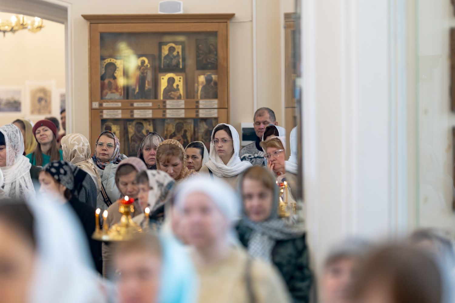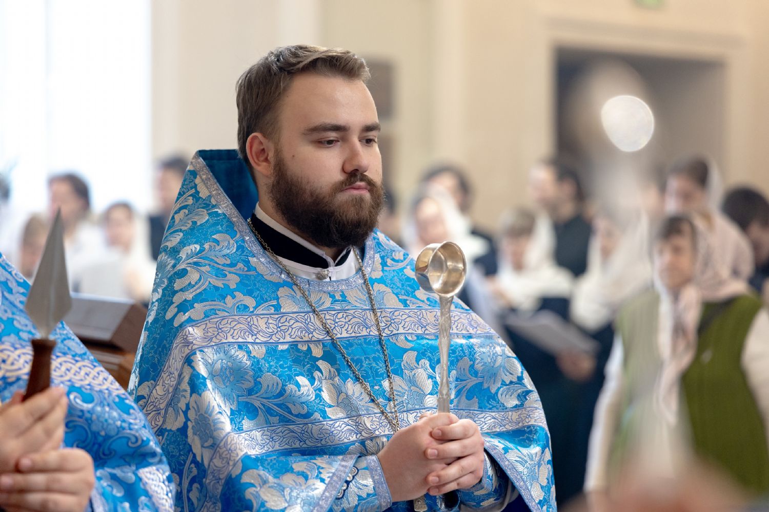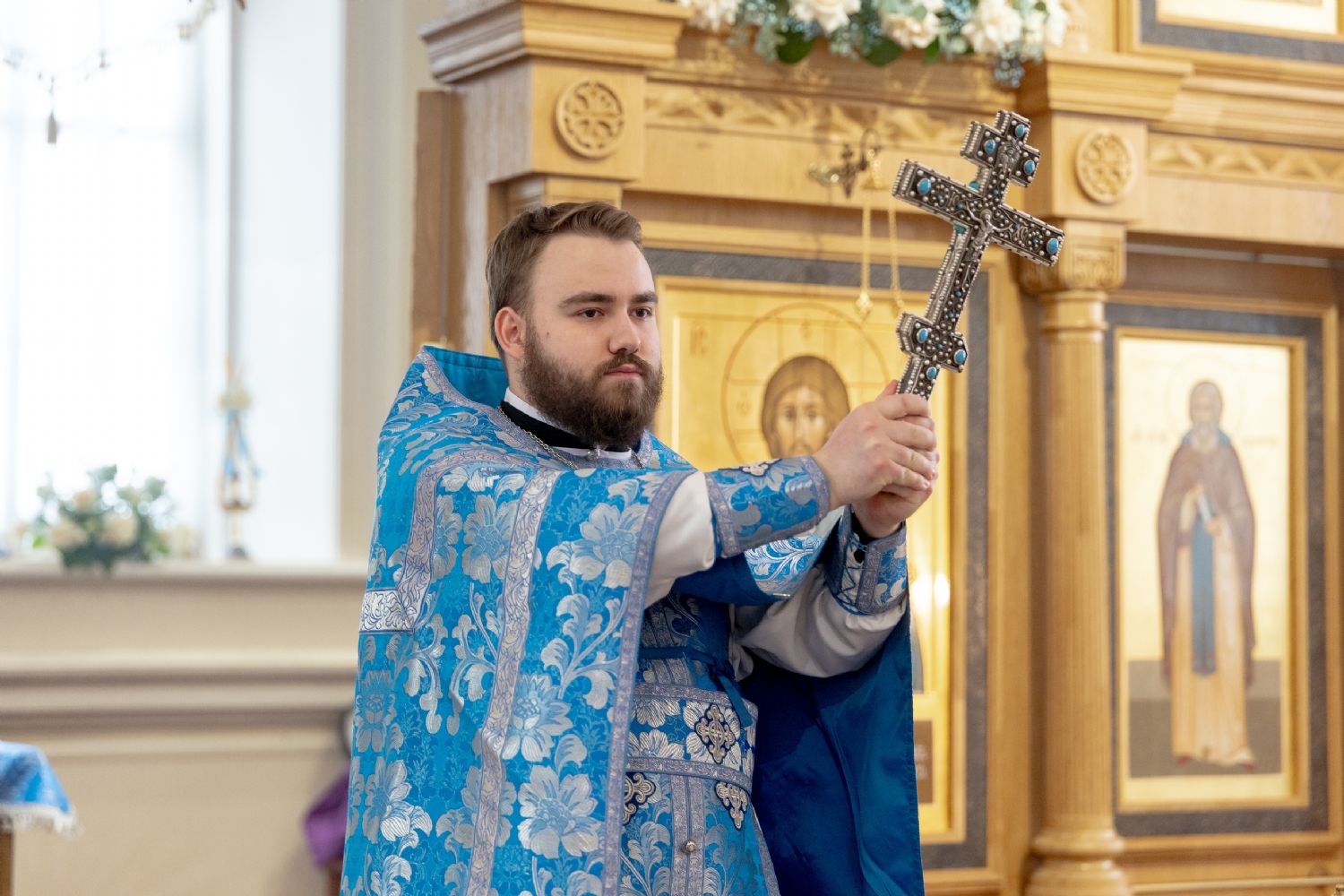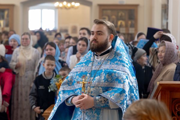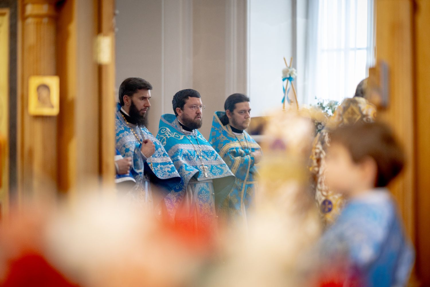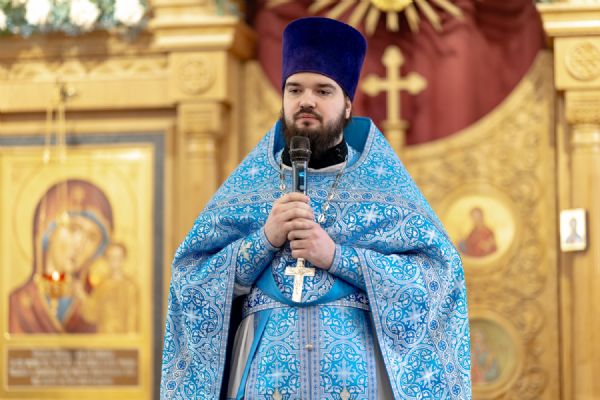 На мирной и сугубой ектениях были вознесены молитвы о Российском воинстве и о мире. Проповедь по запричастном стихе произнёс иерей Никита Кузнецов.