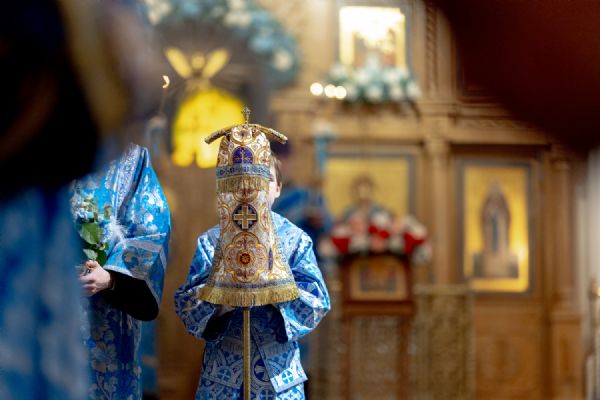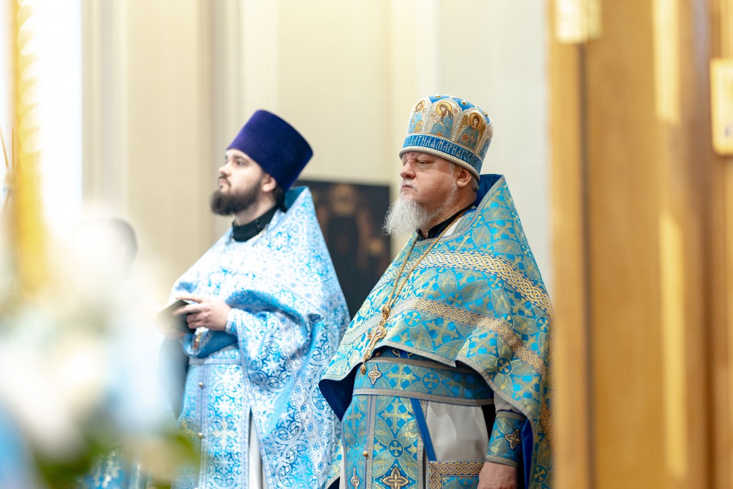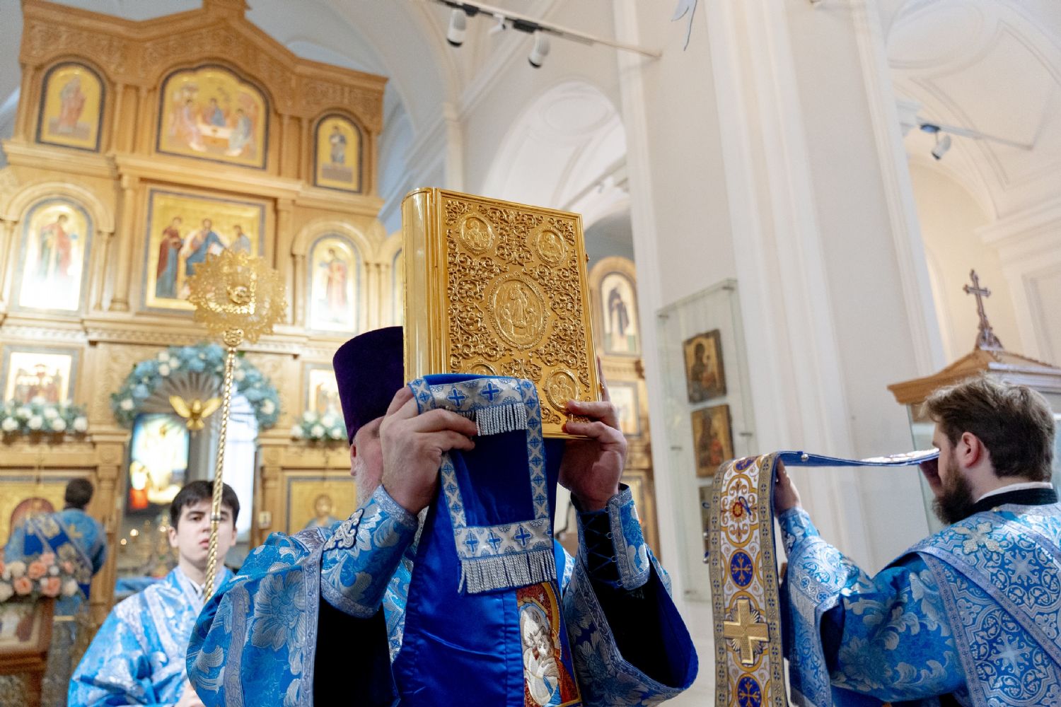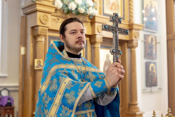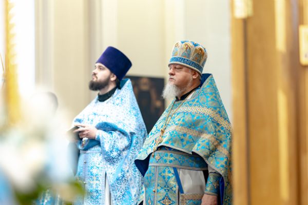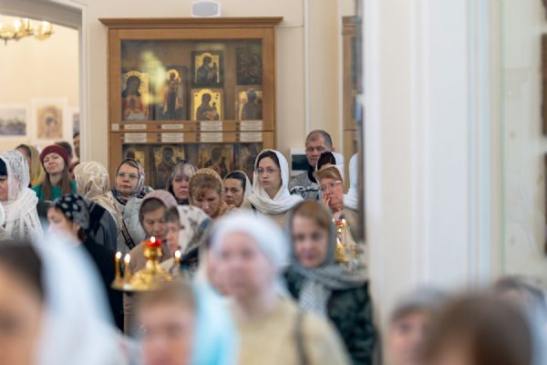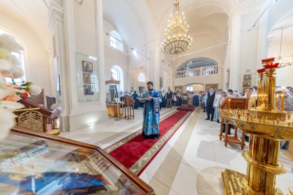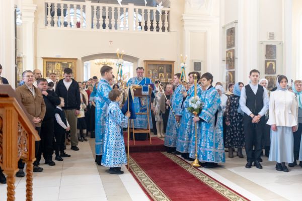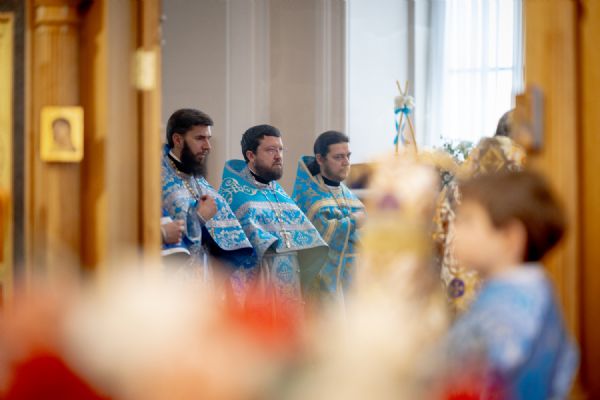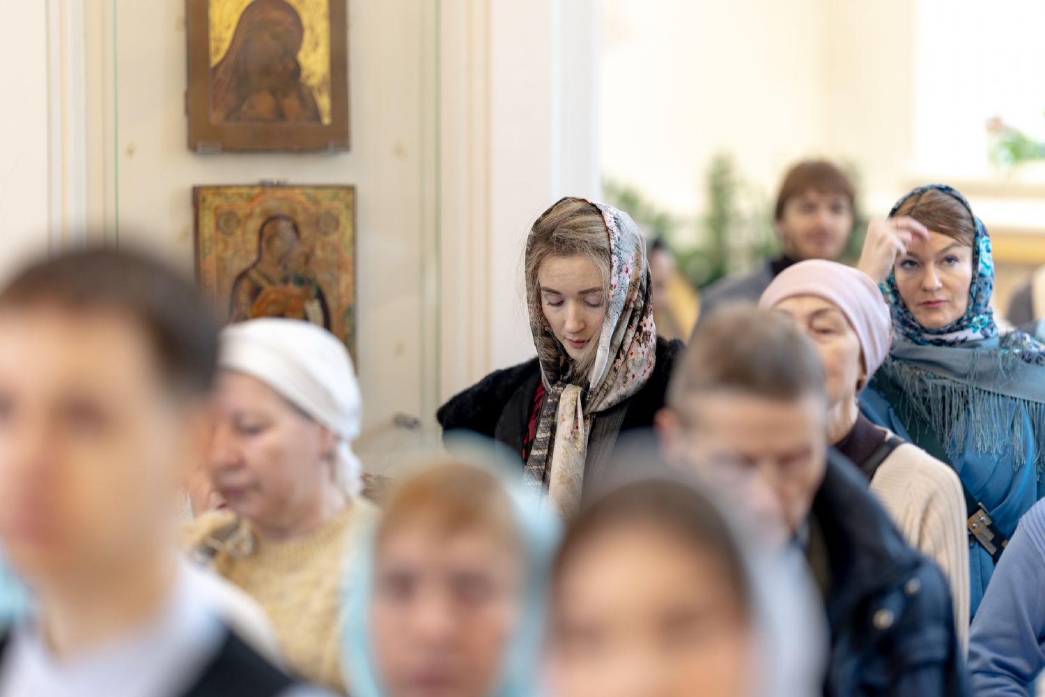 На мирной и сугубой ектениях были вознесены молитвы о Российском воинстве и о мире. Проповедь по запричастном стихе произнёс иерей Никита Кузнецов.