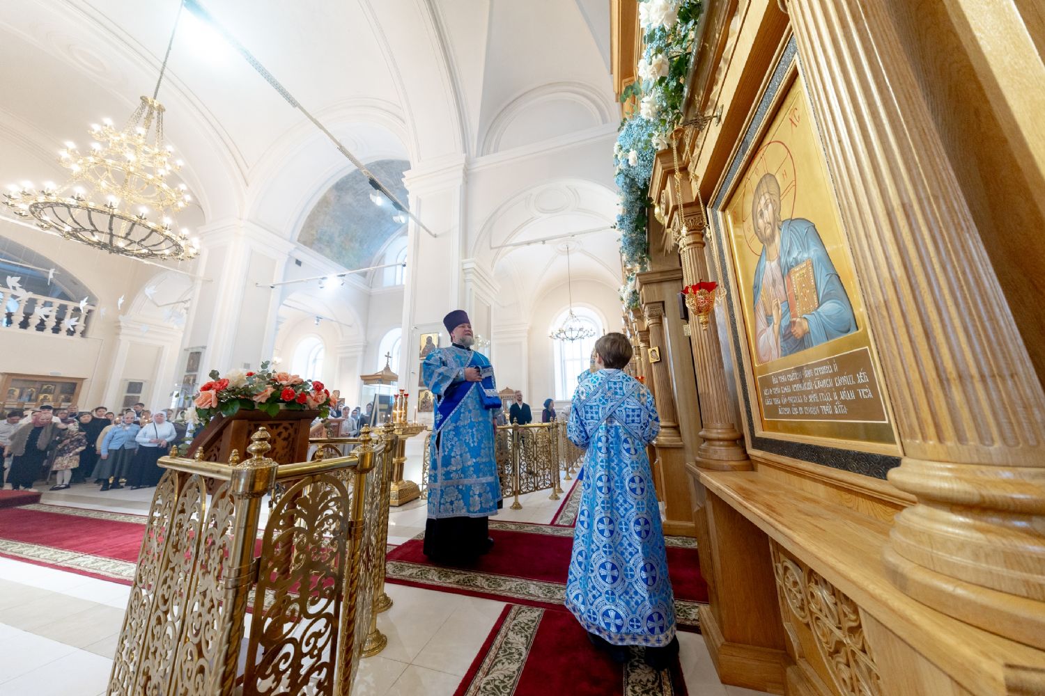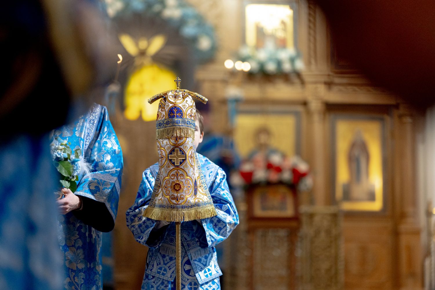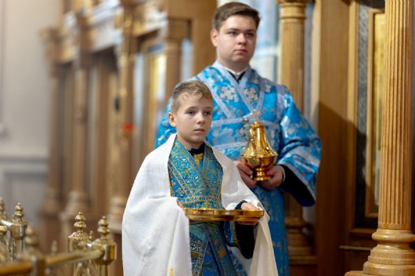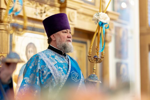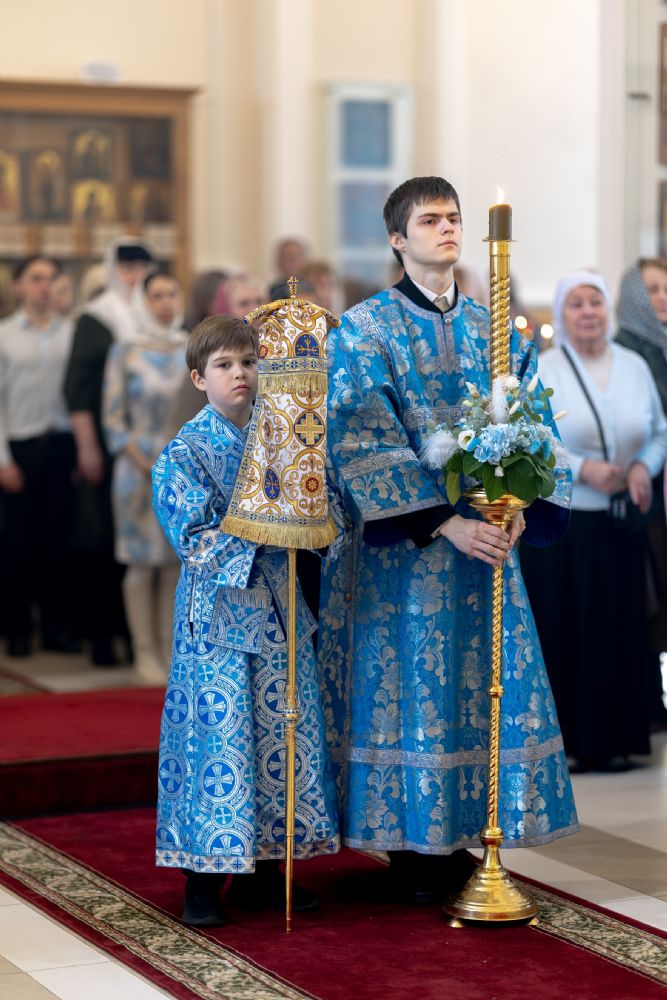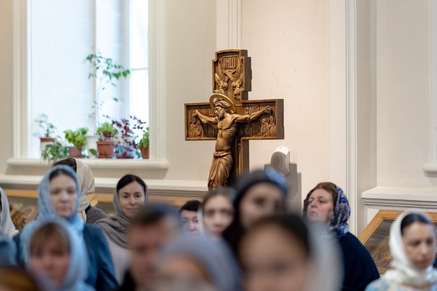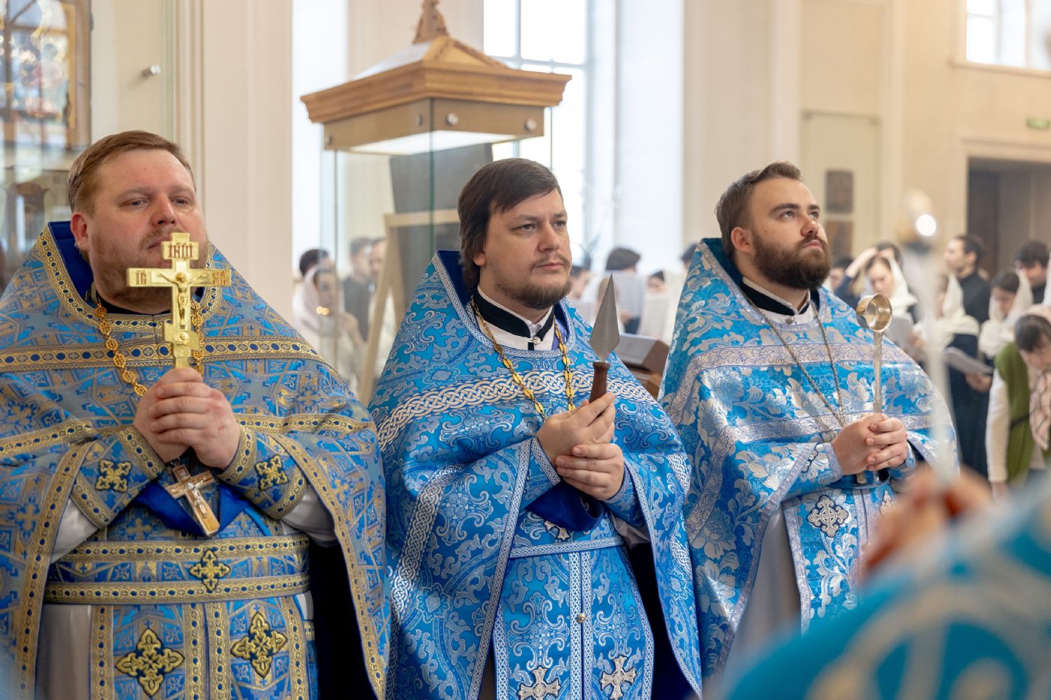 На мирной и сугубой ектениях были вознесены молитвы о Российском воинстве и о мире. Проповедь по запричастном стихе произнёс иерей Никита Кузнецов.