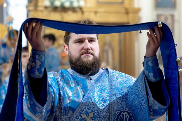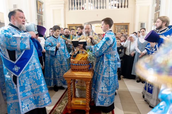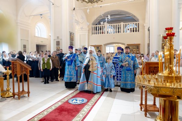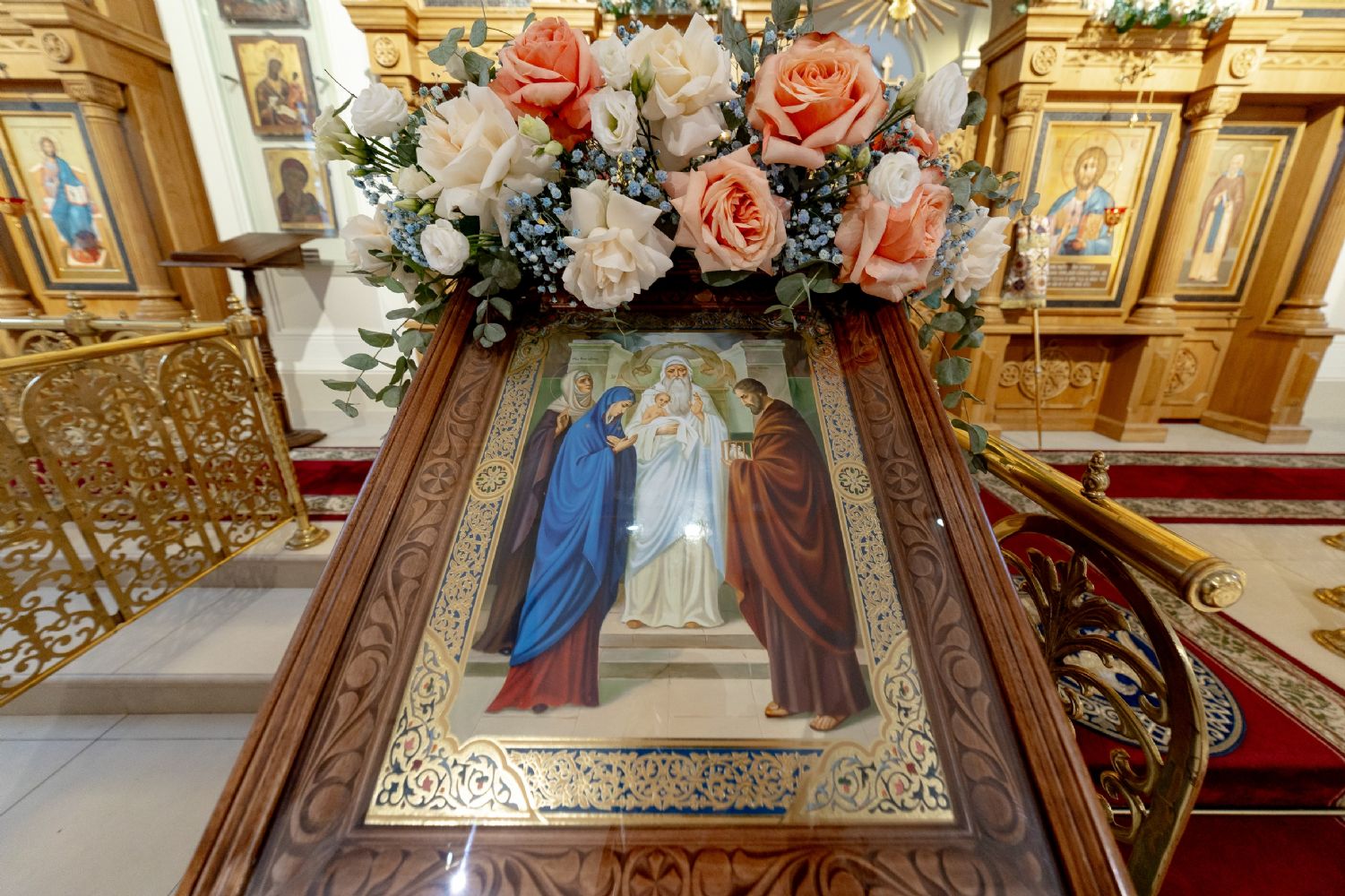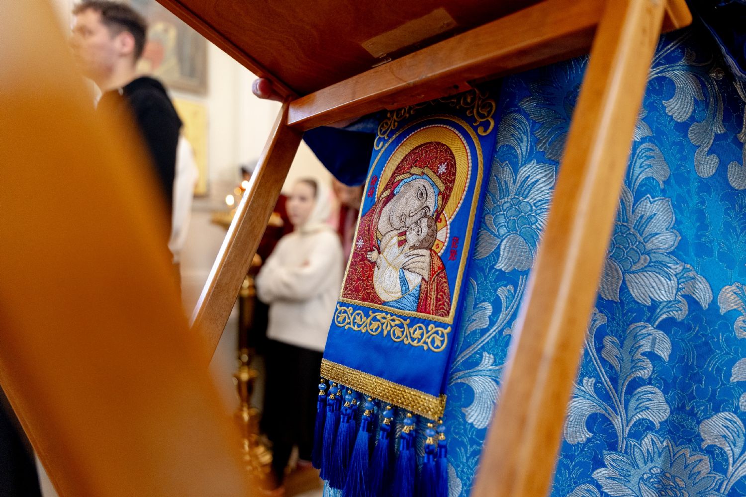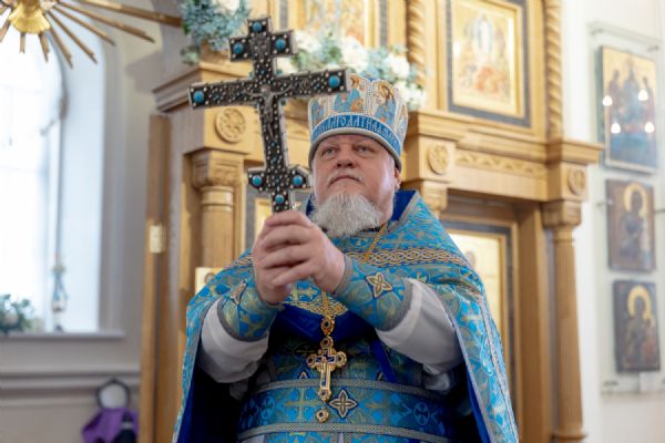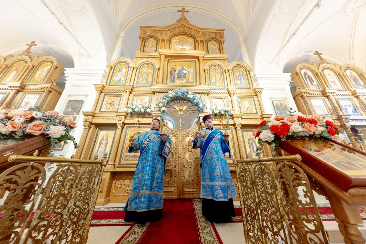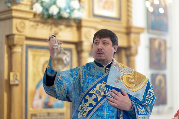 На мирной и сугубой ектениях были вознесены молитвы о Российском воинстве и о мире. Проповедь по запричастном стихе произнёс иерей Никита Кузнецов.