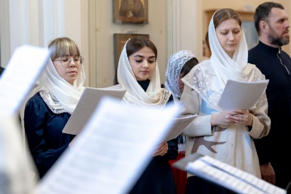 Песнопения исполнили архиерейский смешанный хор под управлением Марины Литвиненко и хор студентов Казанской духовной семинарии под управлением Дениса Рогова.