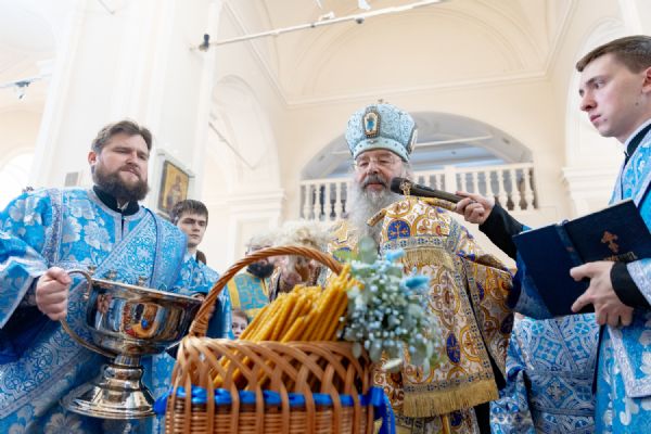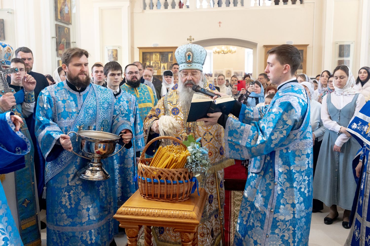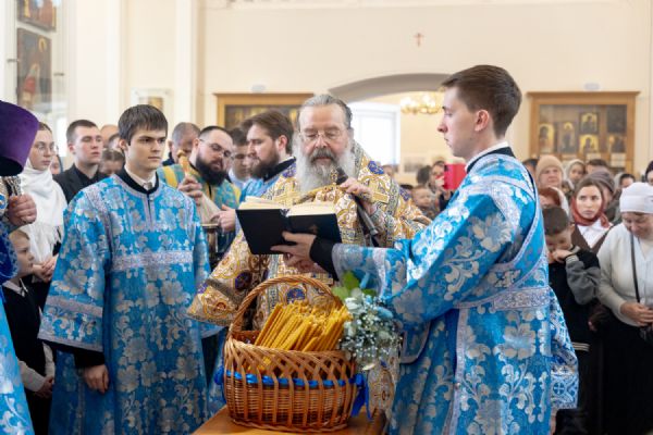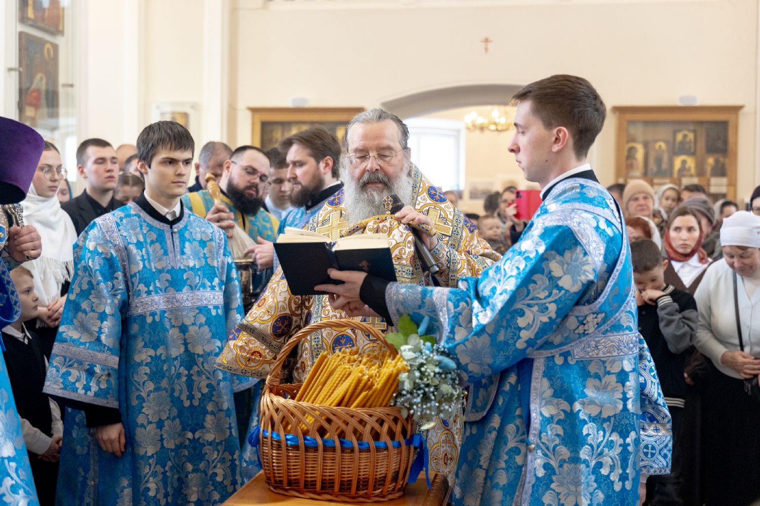 По заамвонной молитве митрополит Кирилл по традиции освятил свечи. Было совершено славление празднику Сретения.