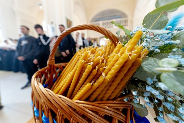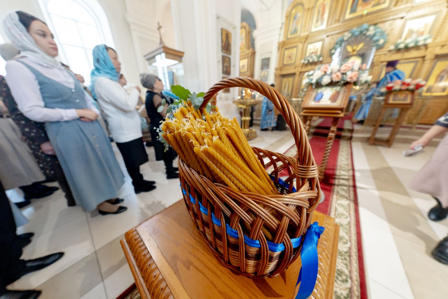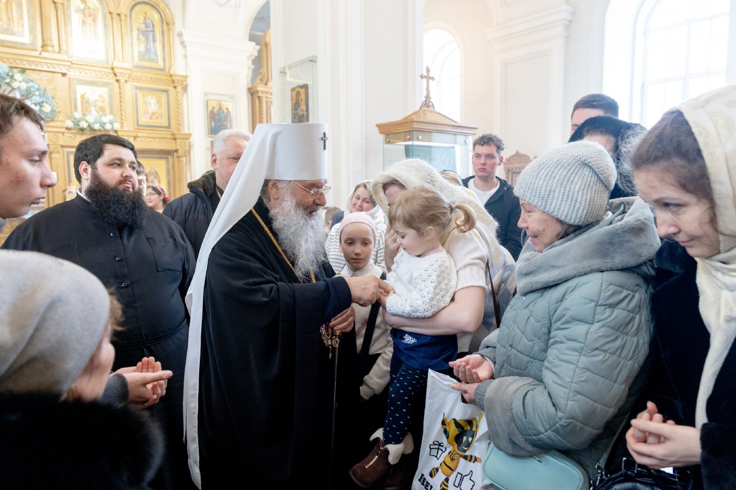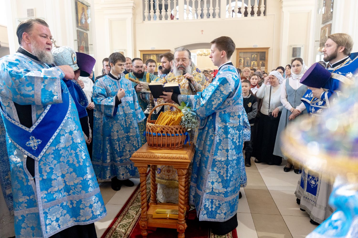 По заамвонной молитве митрополит Кирилл по традиции освятил свечи. Было совершено славление празднику Сретения.