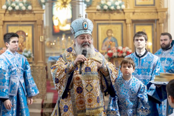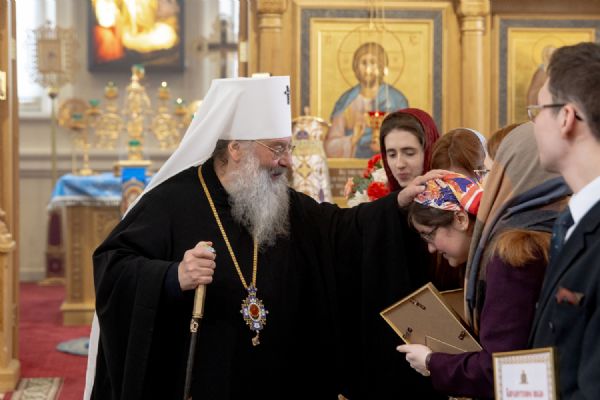 Архипастырь зачитал обращение Святейшего Патриарха Московского и всея Руси Кирилла по случаю празднования Дня православной молодёжи и обратился к верующим со словом:
