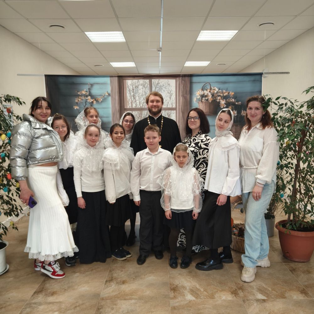 Наши девочки, обучающиеся в школе клиросного пения под руководством матушки Елизаветы, открыли праздничный концерт, исполнив радостную пасхальную песню, наполнившую сердца всех присутствующих светом и теплом.