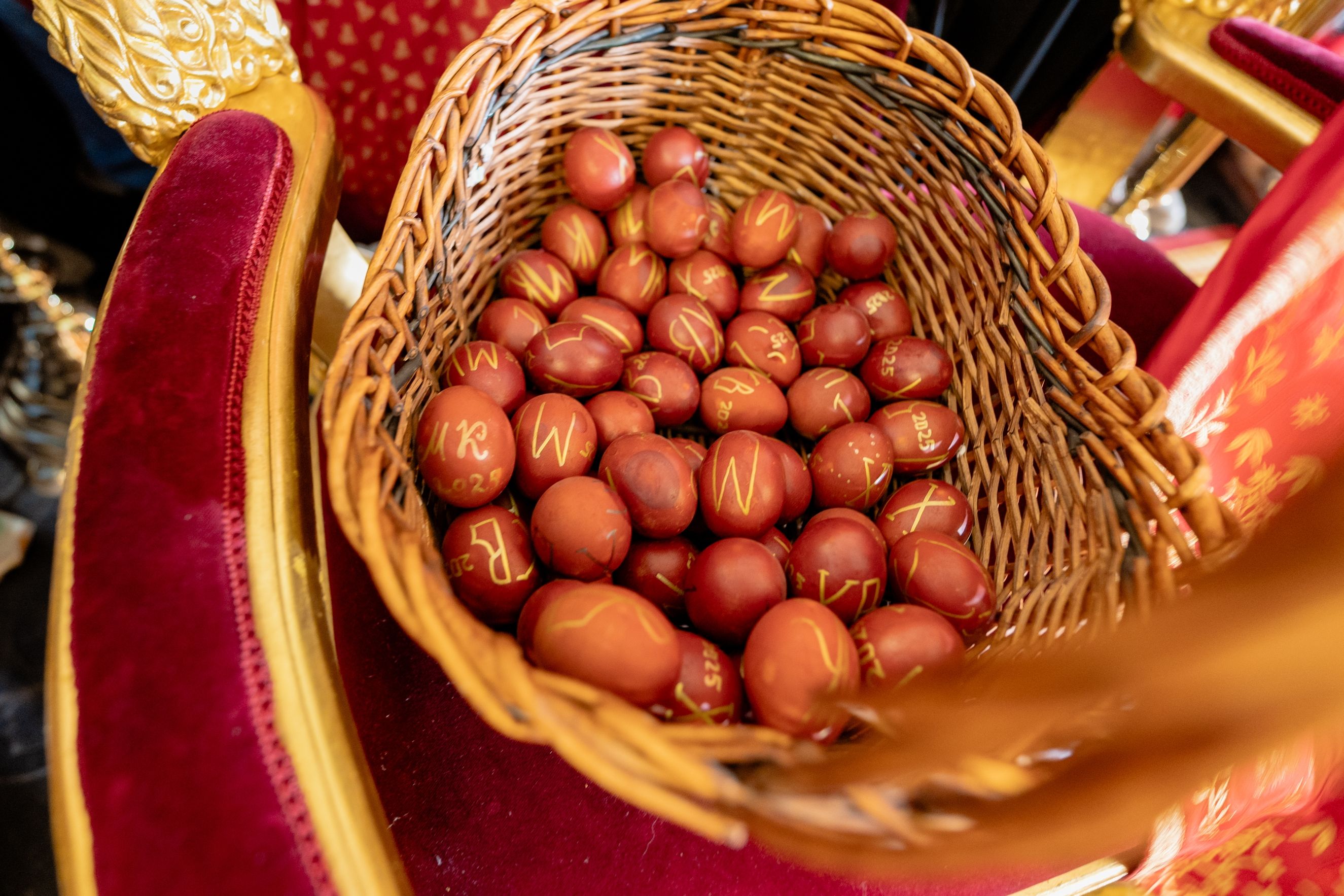 В конце утрени после чтения Огласительного слова святителя Иоанна Златоуста архипастырь и священнослужители раздали верующим пасхальные яйца.
