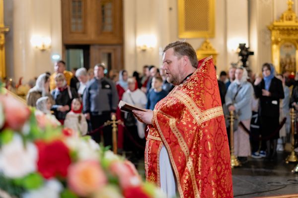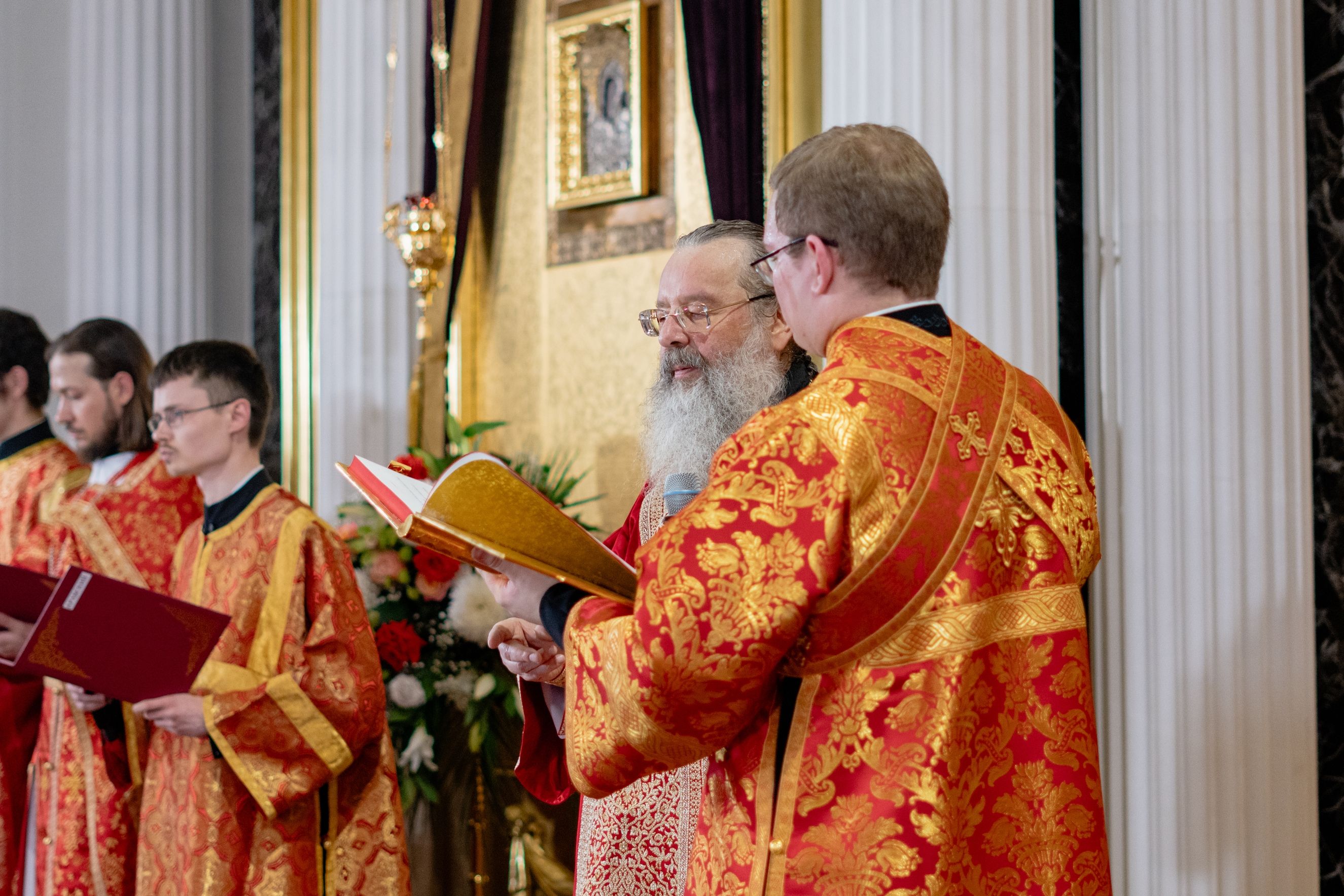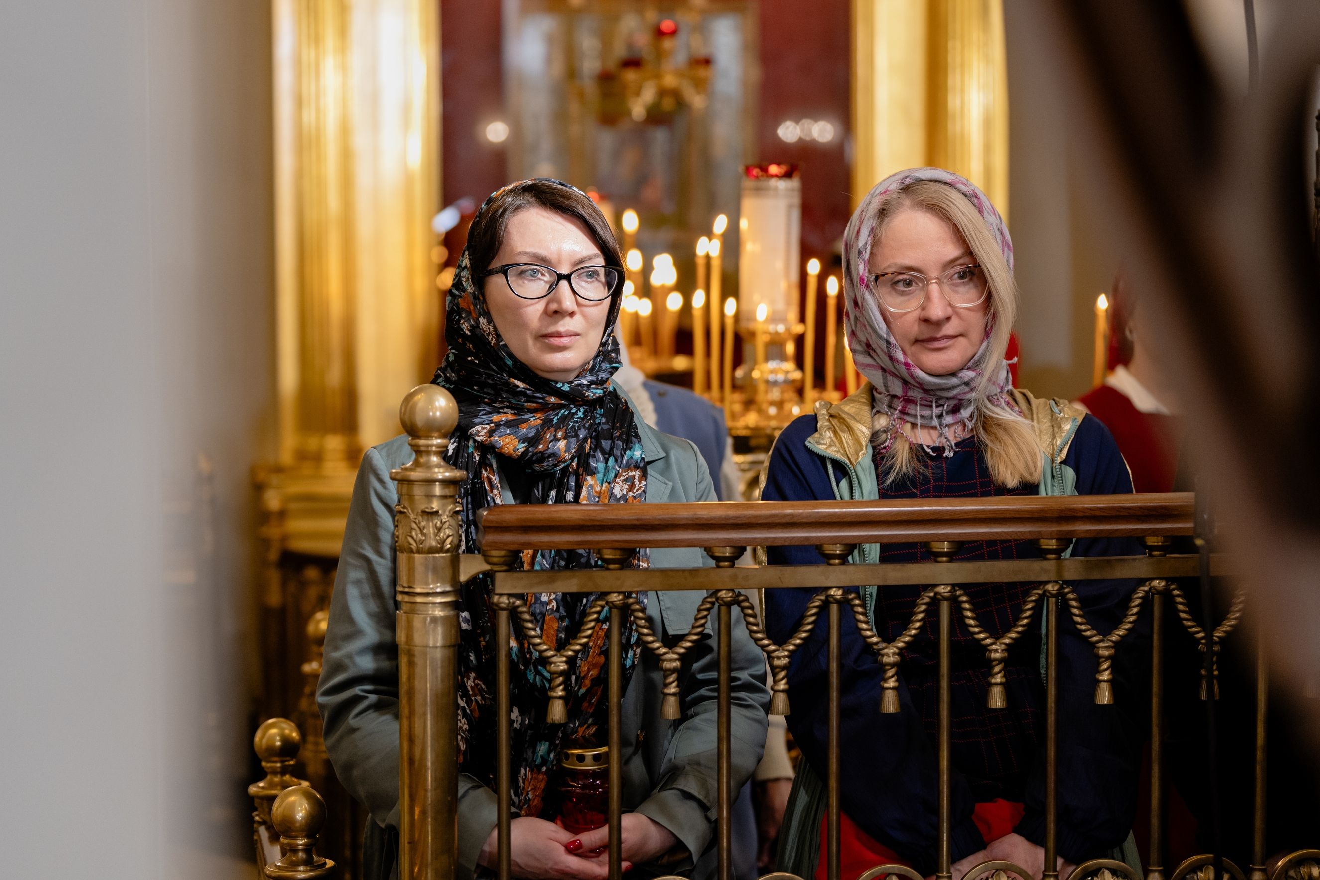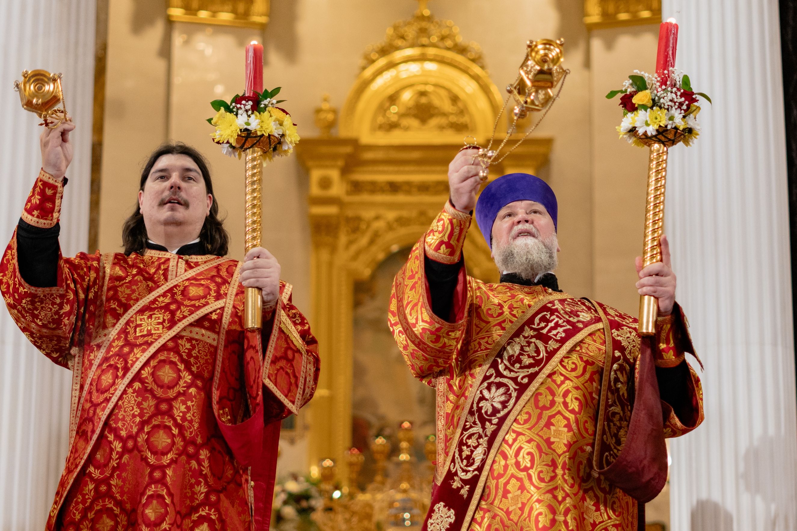 Песнопения исполнили два архиерейских хора: смешанный под управлением Марины Литвиненко и мужской под управлением Дениса Рогова.