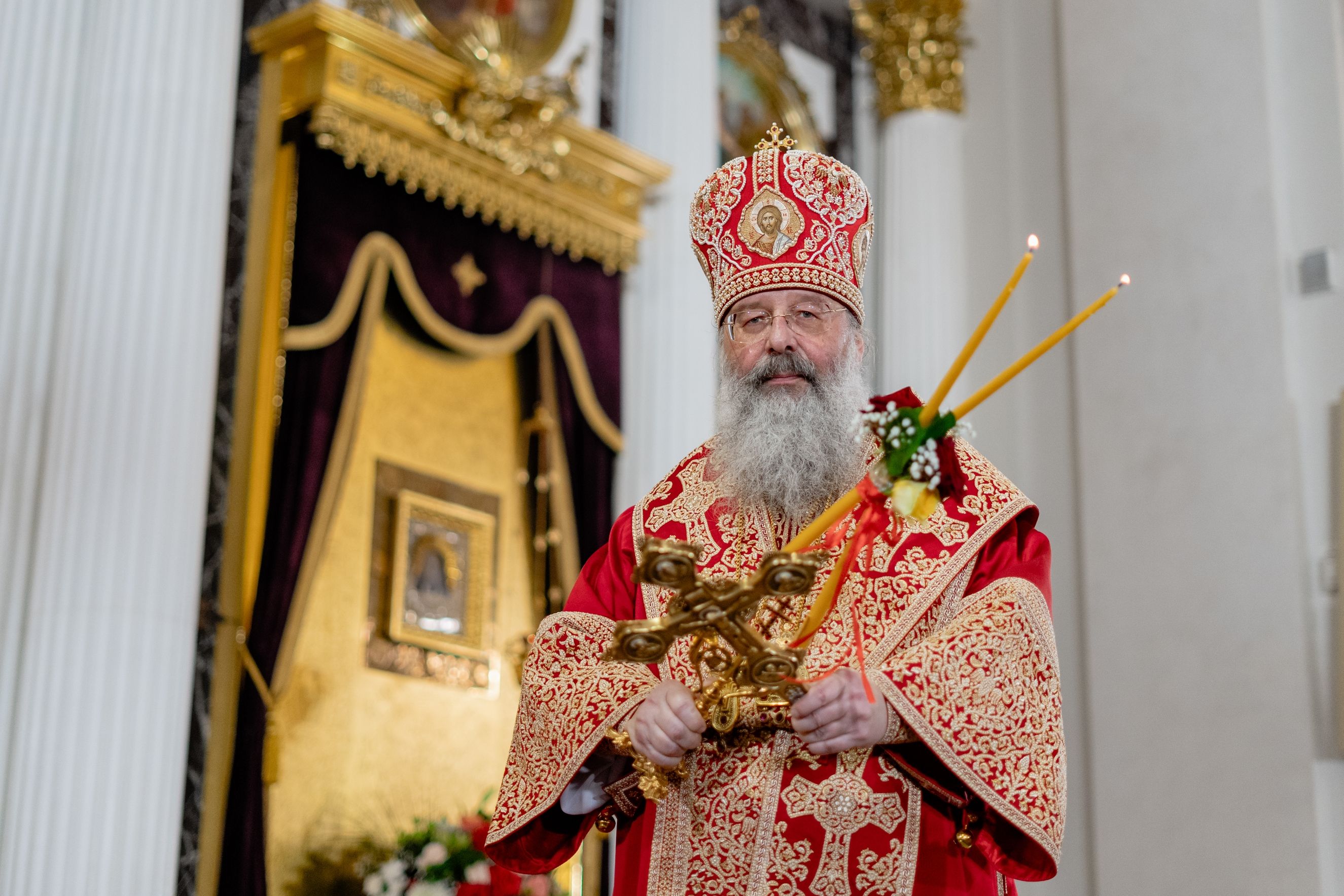 Поздравляю вас со Светлым Христовым Воскресением! Мы дожили до светлого пасхального богослужения, до светлой пасхальной радости. Милость Божия в том, что мы живём и радуемся, ходим своими ногами, имеем возможность молиться в прекрасных храмах. За это надо Бога благодарить. Мы являемся свидетелями восстановления храмов, тогда как наши отцы и деды видели лишь их разрушение. Возвращение святынь и стремление народа вернуться на путь истины — это великое благо, за которое мы должны Бога благодарить.