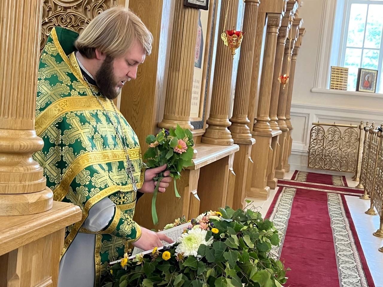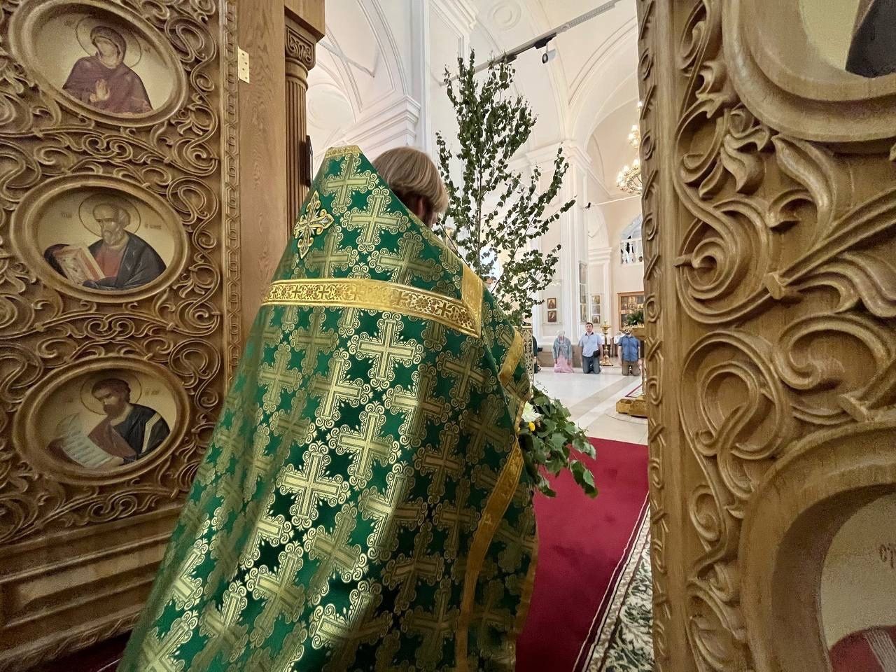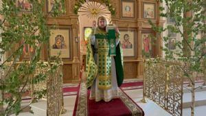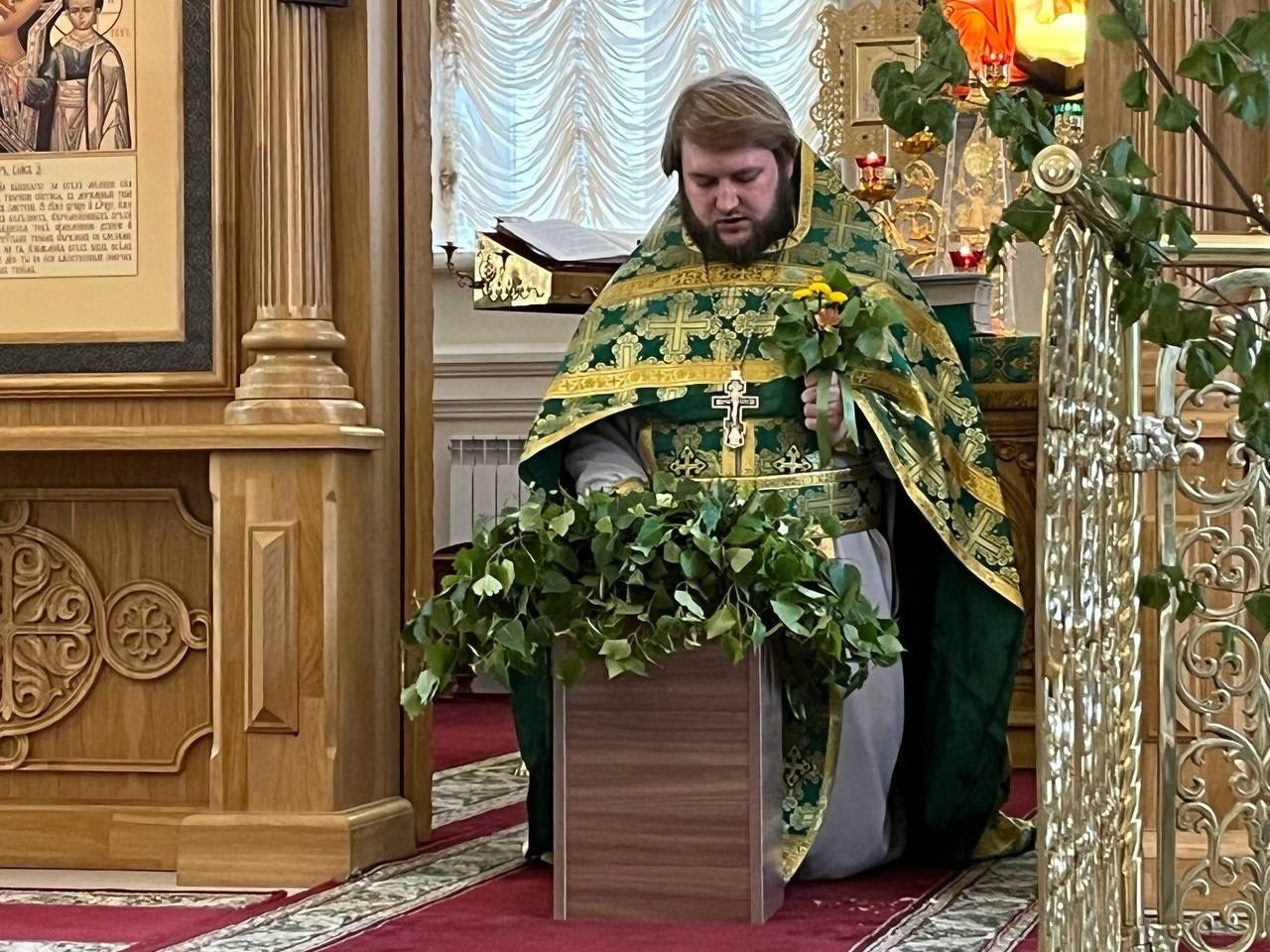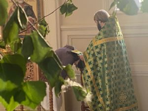 На сугубой ектении настоятель храма иерей Артемий прочитал молитву ко Господу о Святой Руси. По окончании Литургии была совершена Великую вечерню праздника Пятидесятницы с чтением коленопреклонных молитв.