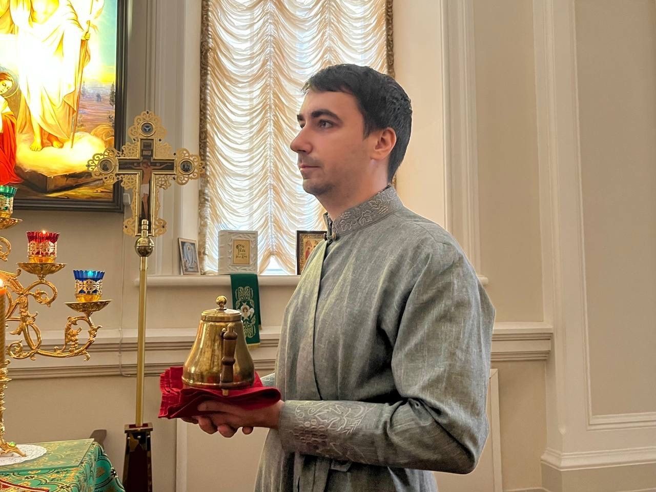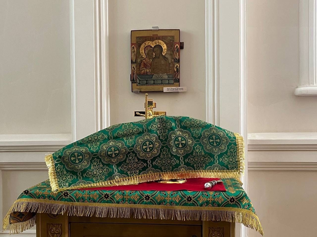 В завершении проповеди настоятель храма сообщил прихожанам, что в дар храму была передана икона Божией Матери «Победительница».