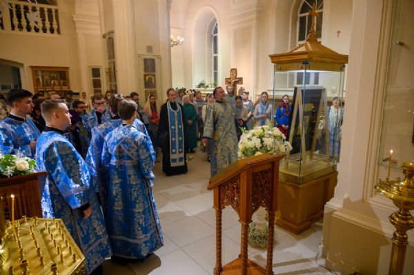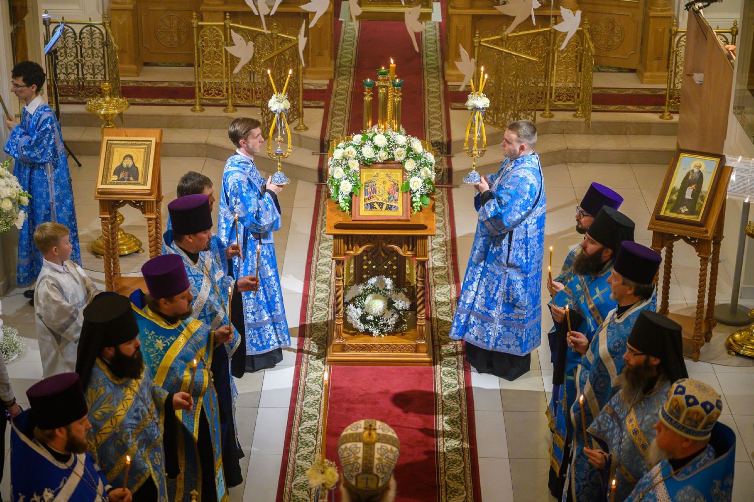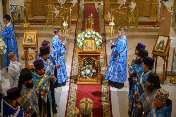 На утрене был прочитан акафист Пресвятой Богородице перед Её образом «Всеблаженная». После чтения Евангелия на полиелее проповедь произнёс протоиерей Иоанн Барсуков. В завершение было совершено славление Божией Матери.