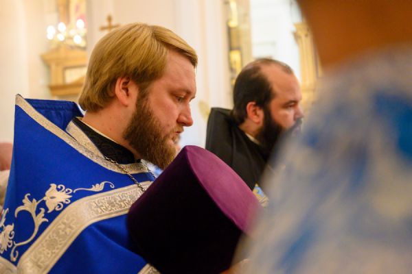 Его Высокопреосвященству сослужили благочинный I Казанского округа протоиерей Владимир Самойленко, настоятель прихода иерей Артемий Лушкин, наместник Казанского Богородицкого монастыря игумен Марк (Виленский), настоятель Введенского Кизического монастыря города Казани игумен Пимен (Ивентьев), настоятель Никольского собора города Казани протоиерей Иоанн Барсуков, настоятель Богоявленского собора города Казани протоиерей Алексий Державин, настоятель Иоанно-Предтеченского монастыря города Казани игумен Алексий (Яцейко), настоятель храма великомученицы Варвары города Казани иерей Димитрий Кудрявский.