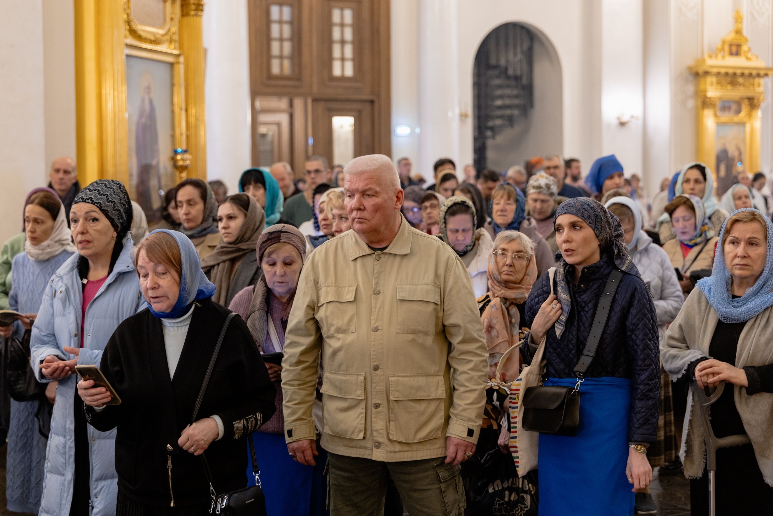 Богослужебные песнопения исполнили два архиерейских хора: смешанный под управлением Марины Литвиненко и мужской под управлением Дениса Рогова.