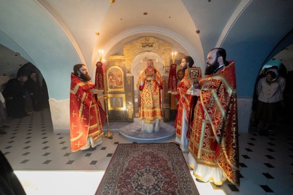 В субботу 2-й седмицы по Пасхе митрополит Кирилл совершил Литургию в Пещерном храме Казанского соборе